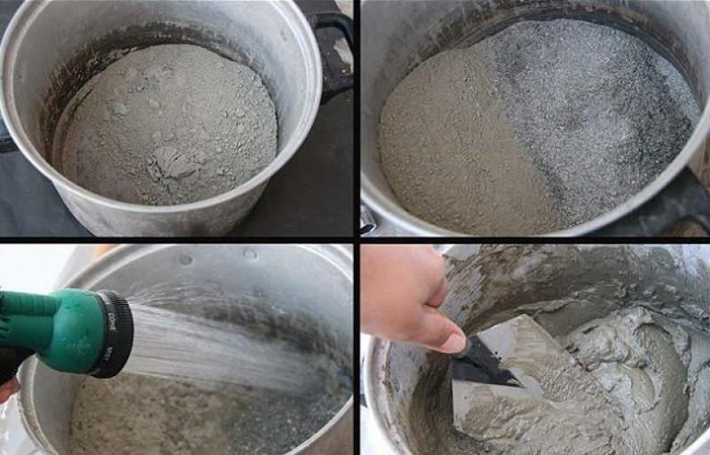 - Цемент и песок берутся в выбранных пропорциях, и перемешивается между собой в сухом виде.